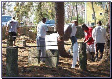 hauled sand, raked leaves, repaired fencing, and cleaned up debris from the